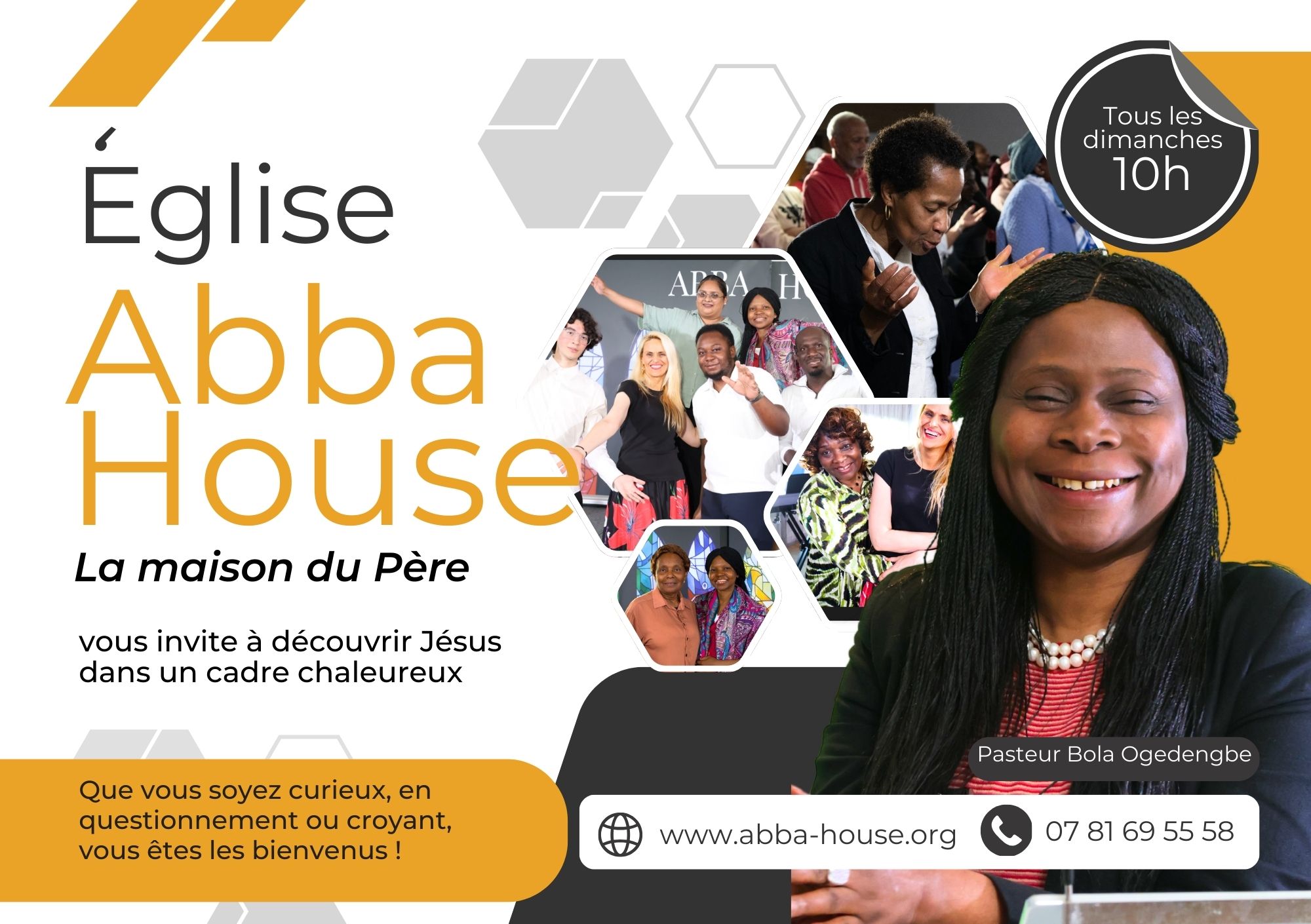 Abba House est une église évangélique chaleureuse et passionnée de Jésus, fondée par le pasteur Bola Ogedengbe. Si vous cherchez une église qui aime la Parole de Dieu, la présence de Dieu et qui aime voir Dieu guérir et délivrer…soyez les bienvenus !