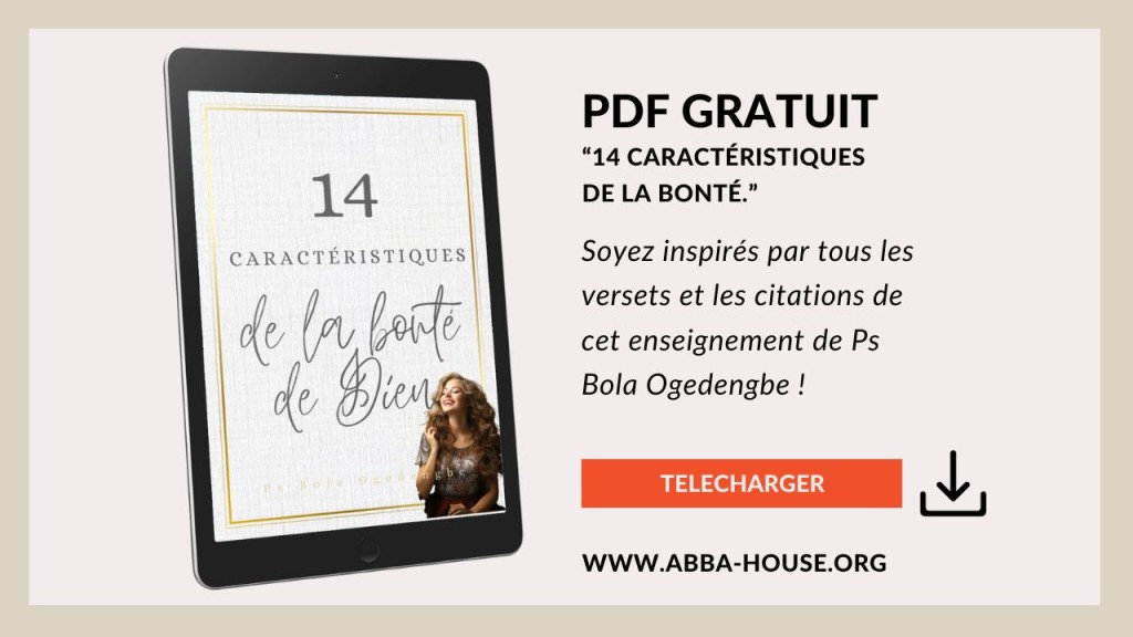 Dans cet enseignement , Pst Bola Ogedengbe nous donne 14 caractéristiques extraordinaires de de la bonté de Dieu. Nous prions que chacune d’entre elle vous inonde de révélation, qu’elle vous rapproche de Dieu et vous remplisse de foi, au nom de Jésus ! Retrouvez la vidéo, le PDF à télécharger, les versets et les citations ci-dessous !